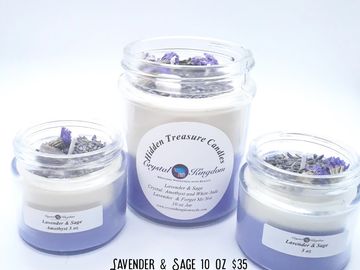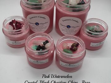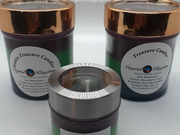 Great for gifts to your loved ones and others. Want to impress someone. These Candles are made from 100% soy wax with crystals wrapped hidden at the bottom of the candle once the candles burn to the bottom they will see the hidden treasure, open the wrap, and surprise!! But they also have may have crystals on top as sell. whether it's with crystals or crystal chips. The candles are infused with the crystal's frequency, vibrations, and characteristics whether love, joy, peace, etc. Best of all th